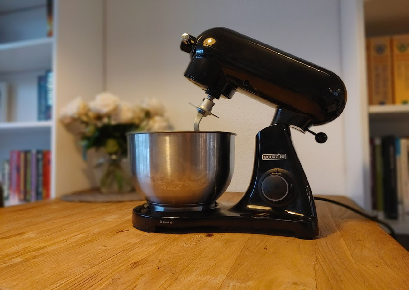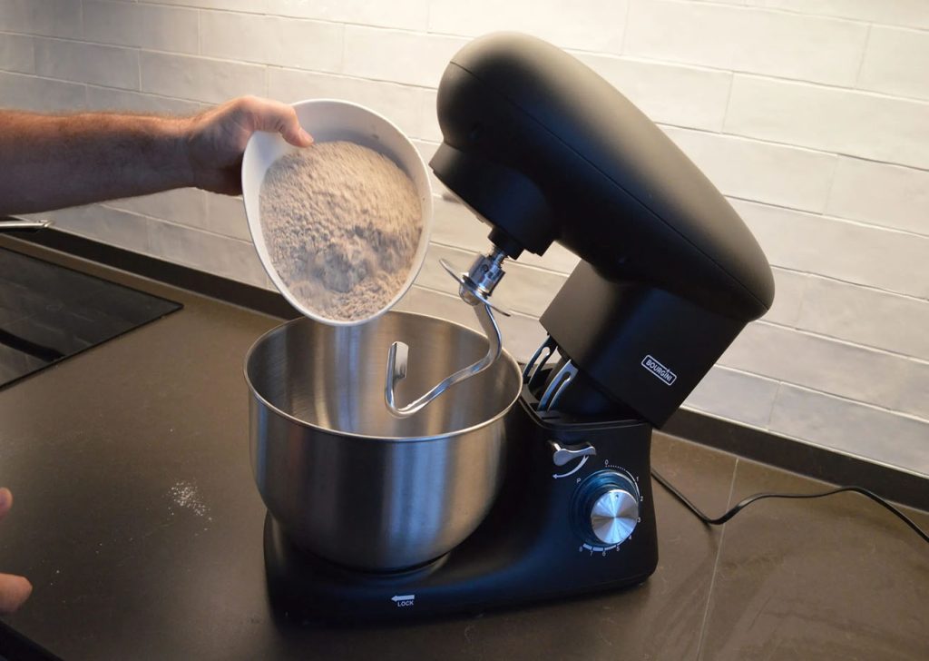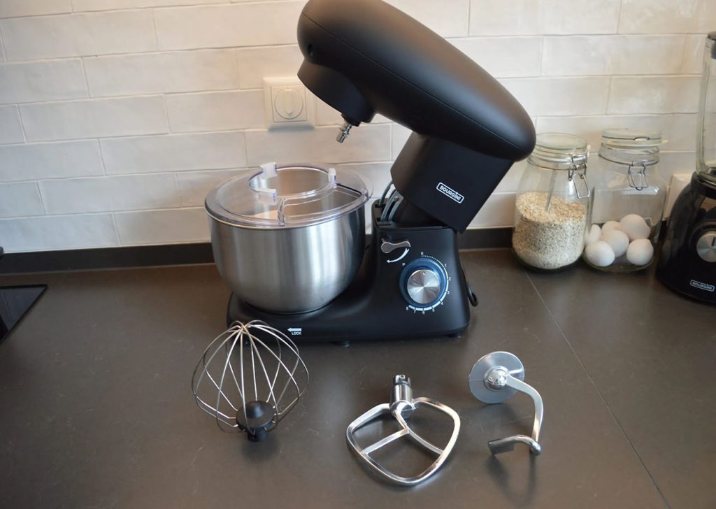 Een pluspunt is het transparante spatdeksel — onmisbaar in open keukens waar je liever geen wolk van meel in de lucht hebt hangen.